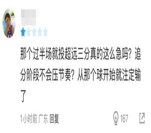 此前胡明轩在低迷的时候,因为故意把比赛节奏放缓而饱受诟病,最近他好不容易跟上球队的快节奏,但在本场对阵宁波需要降速、压节奏时,胡明轩反倒是一个劲地冲,在球队落后5分的情况下,他那记超远三分打铁,也为球队最后的失利埋下伏笔。