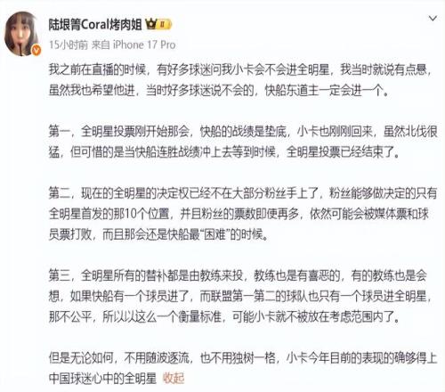 "建议球迷集体请愿递补小卡,这波亏大了,明年全明星得给东道主留条活路!"
