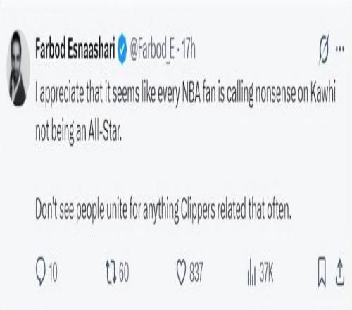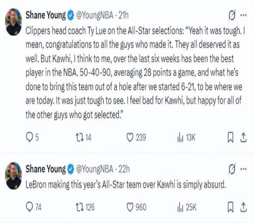 尽管如此,对于快船队和伦纳德本人来说,全明星的遗珠之憾或许已翻篇,眼前的团队目标更为重要,球队目前展现出了良好的化学反应,伦纳德作为绝对核心保持着巅峰状态,他们的目标显然是希望在季后赛中走得更远,用更具说服力的团队成绩来证明自己。